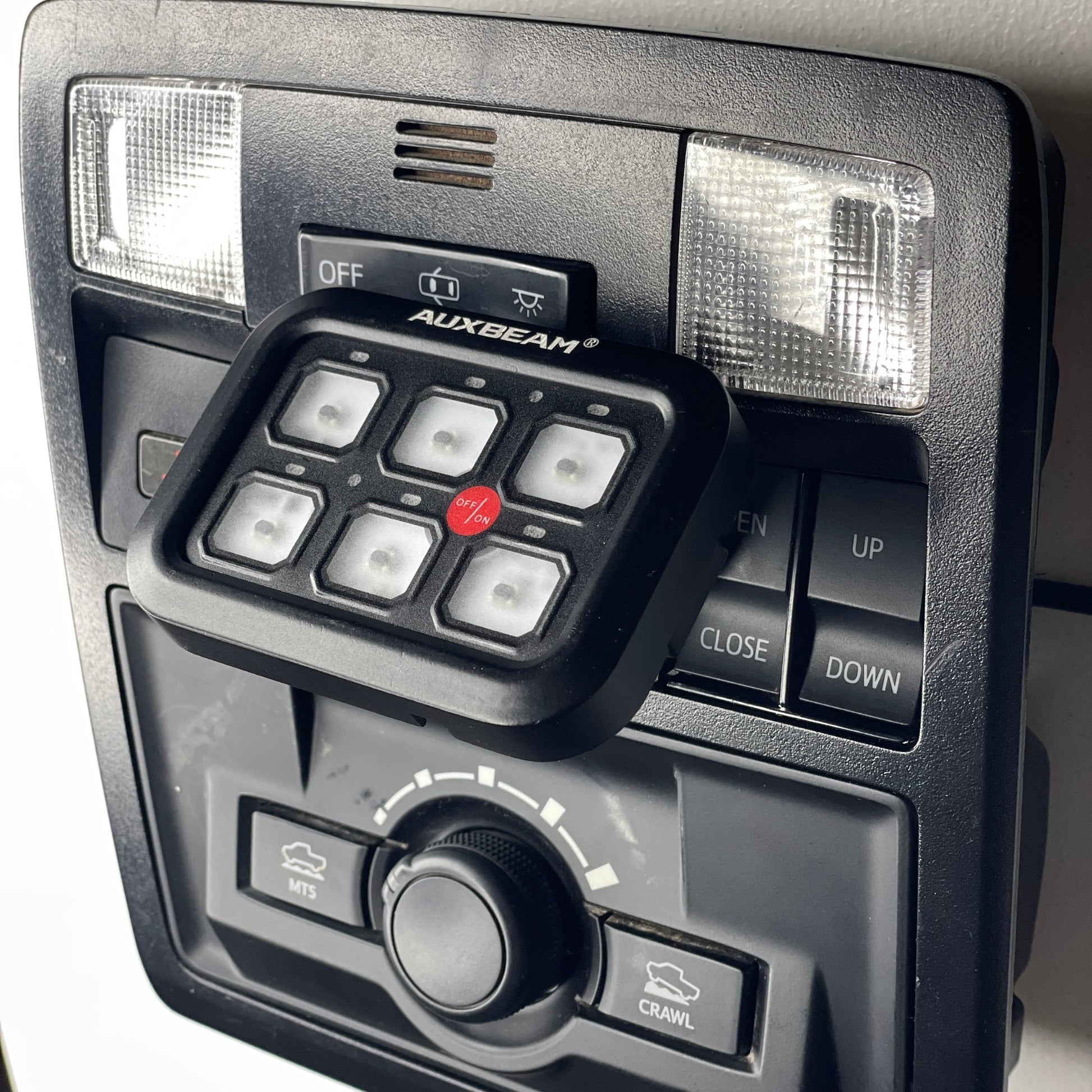 This is a very easy bolt on mod that requires no cutting. The overhead console on the Tacoma has very limited space and this accessory allows you to consolidate all of your controls to the overhead console. You have to option to either Mount a Universal 1"Ball mount or any of the Auxbeam control panels. This was designed so that you can still access the rear diff locker button as well as the sunroof control buttons.